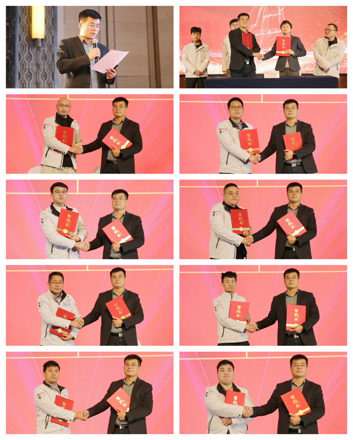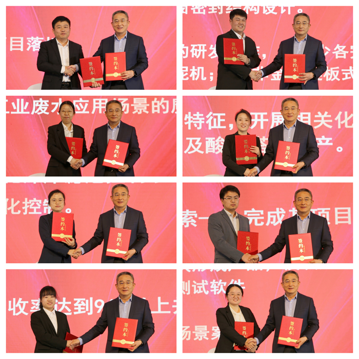 盛典在市經開區管委會(huì)副主任方強的致辭中拉開了帷幕,在接下來的產品推介會(huì)上,來自裝配式(shì)水廠、深床反硝(xiāo)化濾池係統、高效/磁混凝係統、BAF智慧(huì)工藝、臭廢氣收集及處理係統、工業物聯智能(néng)控製產品(pǐn)及係統(tǒng)、魔方智水產品、環保非標設備八個團(tuán)隊的產品經理從市場角度出發,分享了各自技術化產品的新功能、新(xīn)亮點以及產生的效(xiào)益,並規劃了2025年的市場工作、產品應用場景擴展、升級的思路及目標。隨後,會議舉(jǔ)行了八位產品經理與副董事長鄭俊簽約及(jí)市場銷售人員誓師儀式。