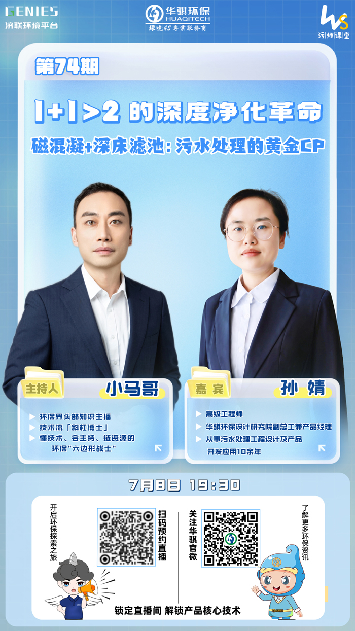 預告!7月(yuè)8日19:30 | 直播:1+1大於2的深度淨化革命 磁混凝+深床濾池:汙水處理的(de)黃金(jīn)CP