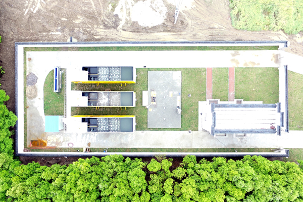 當塗縣石橋鎮汙水處理站於2015年10月開工建(jiàn)設,12月(yuè)下旬建(jiàn)成通水,汙水站設計(jì)規模為800m³/d,采用“高效仿生水(shuǐ)草汙水(shuǐ)處理平台”。