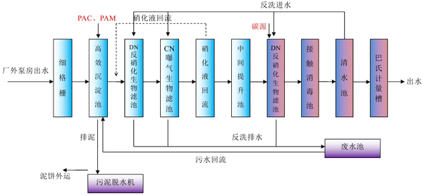 馬鞍山城鎮南(nán)部汙水處理廠規劃設計總規模9.5萬噸/天,現狀規模隻能處理4.5萬噸(dūn)/天。根據現狀進水水量監測,其水量已超過目前(qián)汙水處理廠(chǎng)處理量(liàng)的20%,須對馬鞍山城鎮南部汙水處理廠(chǎng)擴建,擴建處理規模5萬噸/天汙水處理廠一座。本工(gōng)程采用先進的“高效沉澱池+中置硝化三級(jí)生物濾池”的組合工藝(yì),再經過末端處理出水達到“準Ⅳ類標準”後排放(fàng)至朝陽溝。本工(gōng)程脫水後汙泥(80%)運(yùn)至指定地點進行(háng)處置。