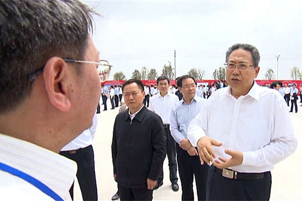 省委書記(jì)李錦斌(右一)與華騏環保(bǎo)董事長王健交談