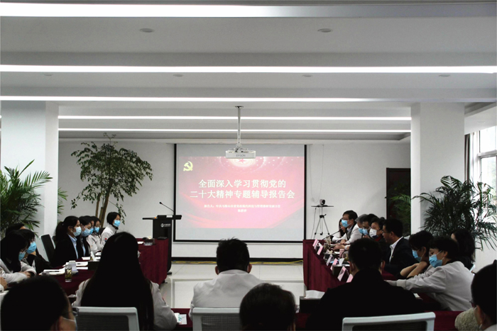 陳群祥教授作題為《全麵(miàn)深入學習貫徹黨的二十大精神》專題分享,闡述了黨的二十大的(de)主題、主要成(chéng)果,講(jiǎng)解了過去5年的工作和新時(shí)代10年的偉大變革,闡釋了(le)馬克思主義中國化時代(dài)化、中國式(shì)現代化的中國特色和本質要(yào)求,解讀了全麵建設社會主義現代化國(guó)家的目標任務、堅持黨的全麵領導和全麵從(cóng)嚴(yán)治黨的重大部署、應對風險挑戰的重要要求,講解了關於報告對(duì)青年的期望與要求。對(duì)黨的二(èr)十大精神作了全(quán)麵(miàn)宣(xuān)講和深入闡釋。
