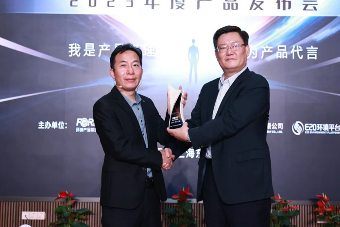 中信環境技術投資(中國(guó))有限(xiàn)公司副總(zǒng)裁羅偉為“魔方智水(shuǐ)”頒發環境產品領跑者國際(jì)聯盟2023年度產品獎杯。羅偉表示,技術產品化,並(bìng)不一(yī)定就是要多掙錢,而是可以為(wéi)社會提供更多更有效率的產品,更有價值的服務。作為環保裝(zhuāng)備領軍企業,華騏環保將工程(chéng)思維轉變為產品思維,對(duì)技術創新進行了產品化、裝備(bèi)化(huà)升級,並以魔方的形式,發布了一係列產品,針對性地提出了多維全場景產品級的解決方案(àn),體現出了自己對(duì)行業產業升級的一份貢獻。