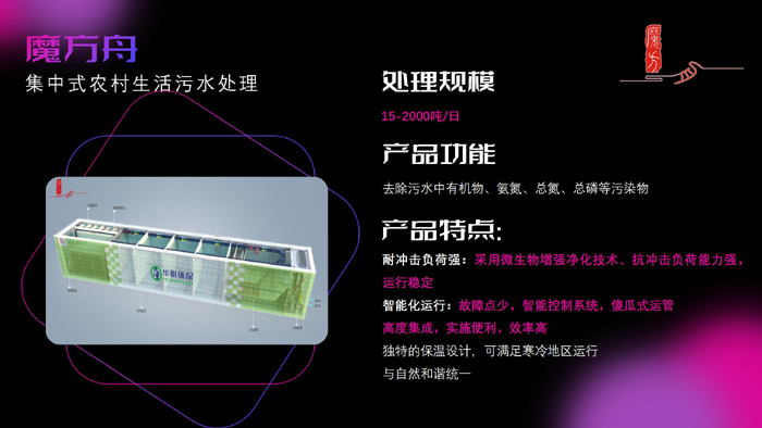 另外,還有針對(duì)小(xiǎo)型分散式農村生活汙水處理場(chǎng)景的魔方格產品,具有能耗低、運(yùn)行簡單穩(wěn)定兩大特(tè)色,日處理水量5噸(dūn)的魔方格一天僅需一度電。