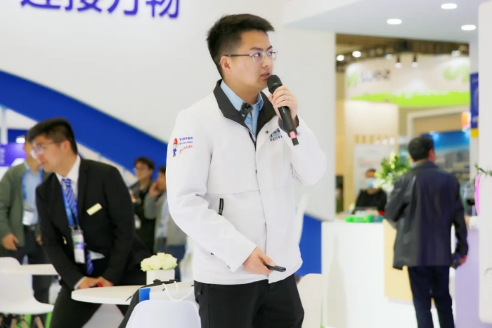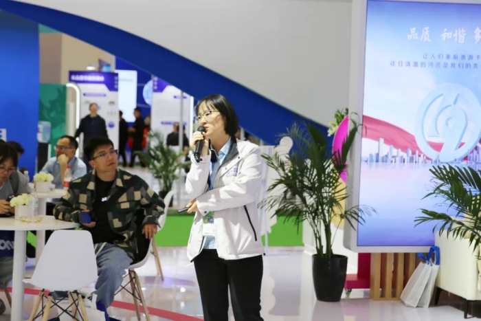 本屆環博會上,華騏環保積極與國內外環保領域的專家學者和企業代表充分交流,共同(tóng)探討環境汙染治理領域的前沿技術與最新解(jiě)決方(fāng)案(àn)。華騏環保副總裁連宏偉在接受E20環境平台采訪時指(zhǐ)出,作為創業板上(shàng)市公司、國家級“專精特新"小巨人(rén)企(qǐ)業,華騏環保不斷提升自主創新水平,通(tōng)過(guò)“一體多翼”的集團化戰略(luè)布局,堅持走(zǒu)技術產品化的高質量發(fā)展之路,加快形(xíng)成新質生產力,以新技術、新產品創造新價值,以“高質服務(wù)”擘(bò)畫未(wèi)來,以“智慧賦能”擎鑄未來。本次環博會,華騏環保的八位產品經(jīng)理現(xiàn)場分享了“BAF智慧工藝的探索與實踐”、“綠色低碳裝配式汙水處理廠”、“魔(mó)方智水(shuǐ)多維場景汙(wū)水治理的實踐與思考”、“iMagcoH磁混凝沉澱池技術及應用”、“iDebed深床反硝化濾池技術及應用”、“臭廢氣收集及處理係(xì)統解決方案”、“智能控製器在環保領域的應用與探討”等核心技術與(yǔ)裝備的精彩內容,充分展現了華騏環保在水務行業領域的綜合實力,亮點紛呈、內涵豐(fēng)富,吸引了眾多與會嘉賓及業內人士駐足聆聽、互動交(jiāo)流。