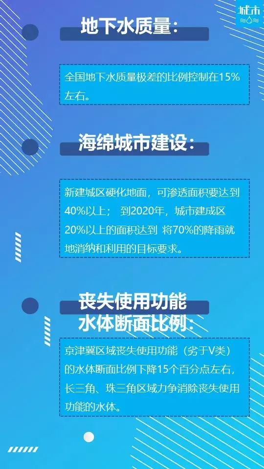查閱了水汙染防治行動計劃(水十條)、城市黑臭(chòu)水體整治(zhì)工作指南、國務院辦公廳關於推進海綿城(chéng)市建設的指導意見、十三(sān)五全國城鎮汙水(shuǐ)處理(lǐ)及再生利用設施建設規劃、城市黑臭水體(tǐ)治理攻堅戰實(shí)施方案等文件,為大家列(liè)舉(jǔ)了其中(zhōng)與水環境相關的12項(xiàng)指標。