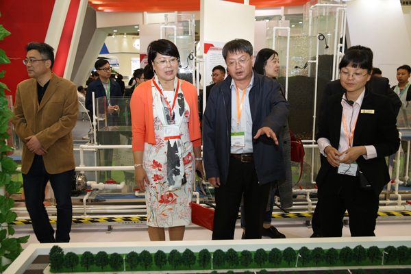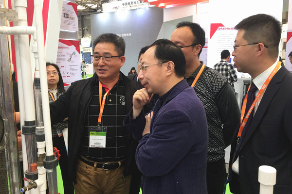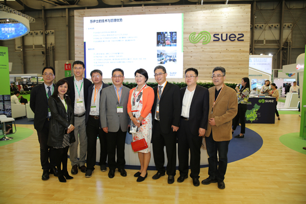 蘇伊士亞洲地區執行副總(zǒng)裁(cái)孫明華(左二)參觀展位