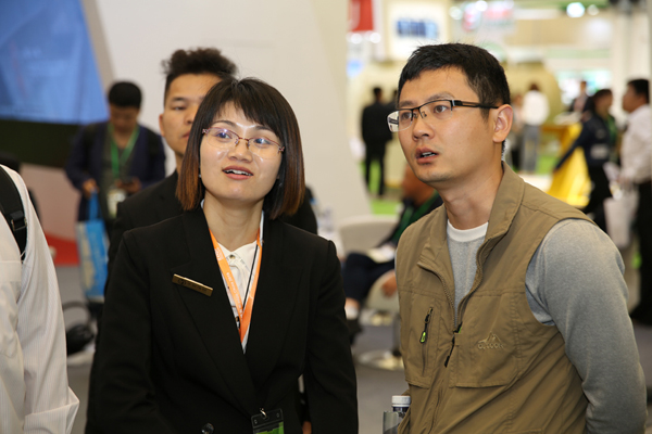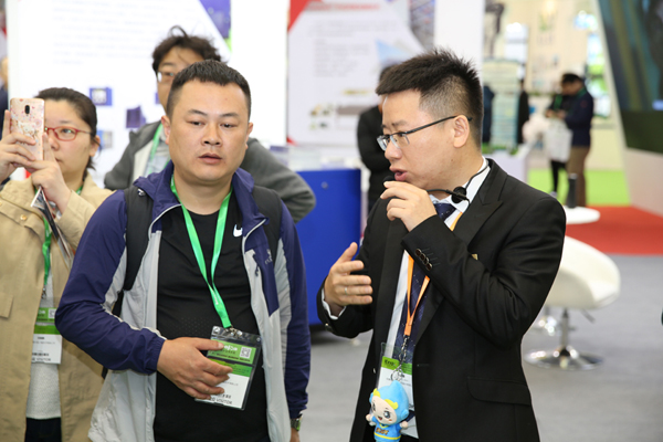 鄭俊為(wéi)客人講解技術與產品(pǐn)
