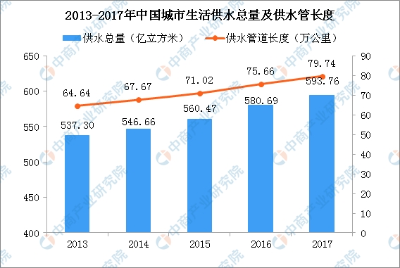 城鎮化水(shuǐ)平提升,城市(shì)基礎設施建設必然要適應城市發展,將推動與人們日常生活息息相關的城市公共供水設施及其重要環(huán)節二次供水設施的建設(shè)。2013年至2017年,我國(guó)城鎮化率由(yóu)53.73%提升至58.52%,相應地每年生活供水總(zǒng)量由537.30億立方米增長至593.76億立方米,供水管道長度由64.64萬(wàn)公裏增加至79.74萬(wàn)公裏。如果不考慮城鎮供水普及率提(tí)升的影響,平均城鎮化(huà)率每提升(shēng)1個百分點,供水管道(dào)長度(dù)需要增加2.71萬公裏。