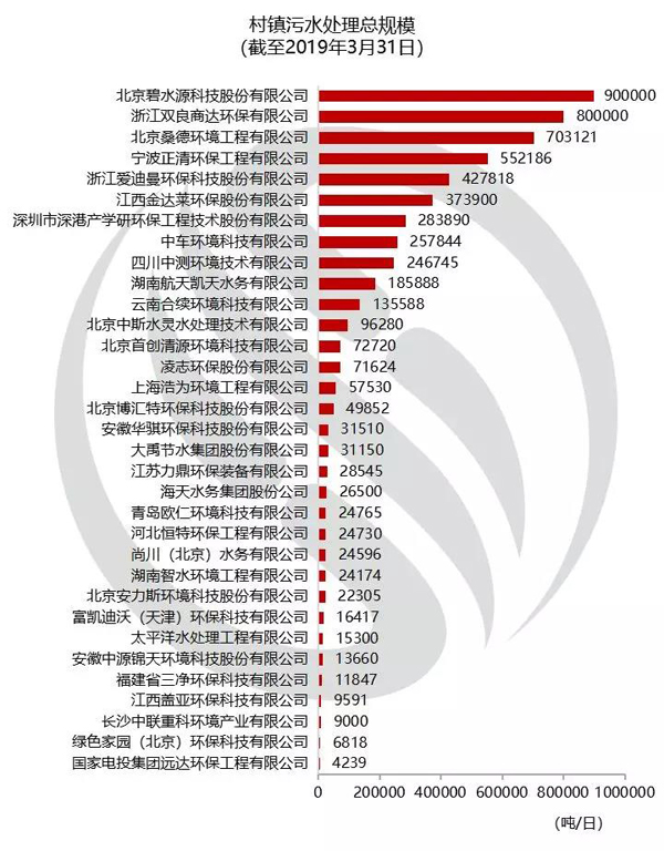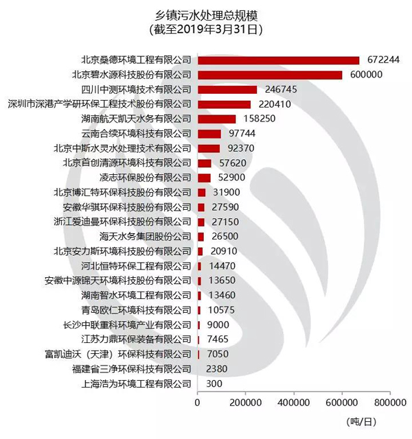 備注:該排名為企業中(zhōng)標簽約的村鎮汙水處理項目設計能力(lì)加總,包含企業參與的投資建設運營、委托維護、工程施工、設備供應等環(huán)節的所有項目,並剔除重複計算(suàn)等因素。