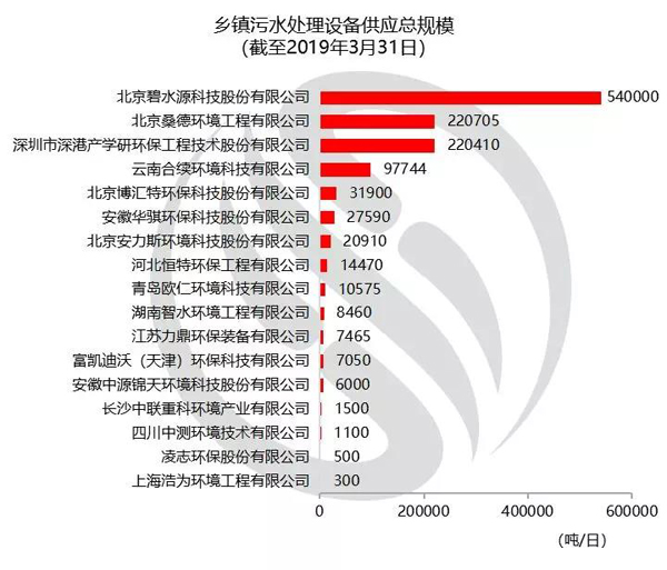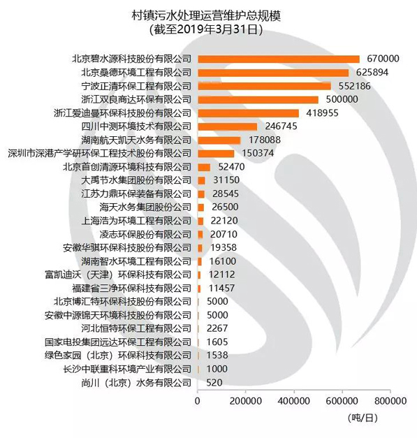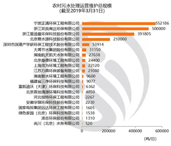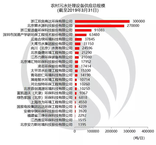 備注:該排名為企業中標簽約(yuē)的農村汙水處理項目設計能力加總,包含企業參(cān)與的投資建設運營、委托維護、工程施工、設備供應等環節的所有項目,並剔除重複計算等因素。